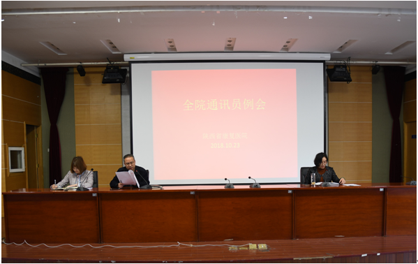 会上院办公室副主任南飞燕宣读了《通讯员管理办法》,并总结了近期宣传工作进展情况,通报了2018年5月份至8月份稿件发布及采用情况。院办公室主任刘晓锋解读了《门户网站管理办法》文件精神,并强调网站内容更新的注意事项。